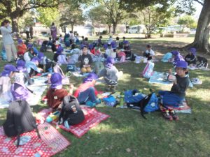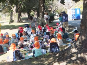 にじ組0歳児さんは、本園舎の大きいお庭、にじ組1歳児さんともも組さんは、泉ヶ丘公園、赤・黄・緑組さんは、江津湖公園に遠足に行ってきました。