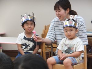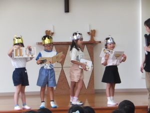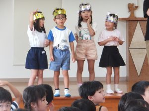 それぞれの学年で、お祝いをしました。礼拝をして、お誕生日の友だちに名前といくつになったかインタビューです。