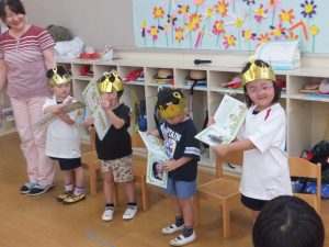 みんなからの「ハッピーバースデイ!」の歌のプレゼントや、担任の先生やおうちの方からのメッセージが書いてある、絵本のプレゼントもありました。世界に一つだけの宝物の絵本です。