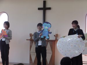先生たちはみんなに会えるのをとても楽しみに待ってました。幼稚園で、お友だちといっぱい遊んで、楽しいこと好きなことをいっぱい見つけて、すこ~しずつ幼稚園のことを好きになってくださいね。かみさまはみんなのことが大好きで、いつもそばで見守ってくださっています。